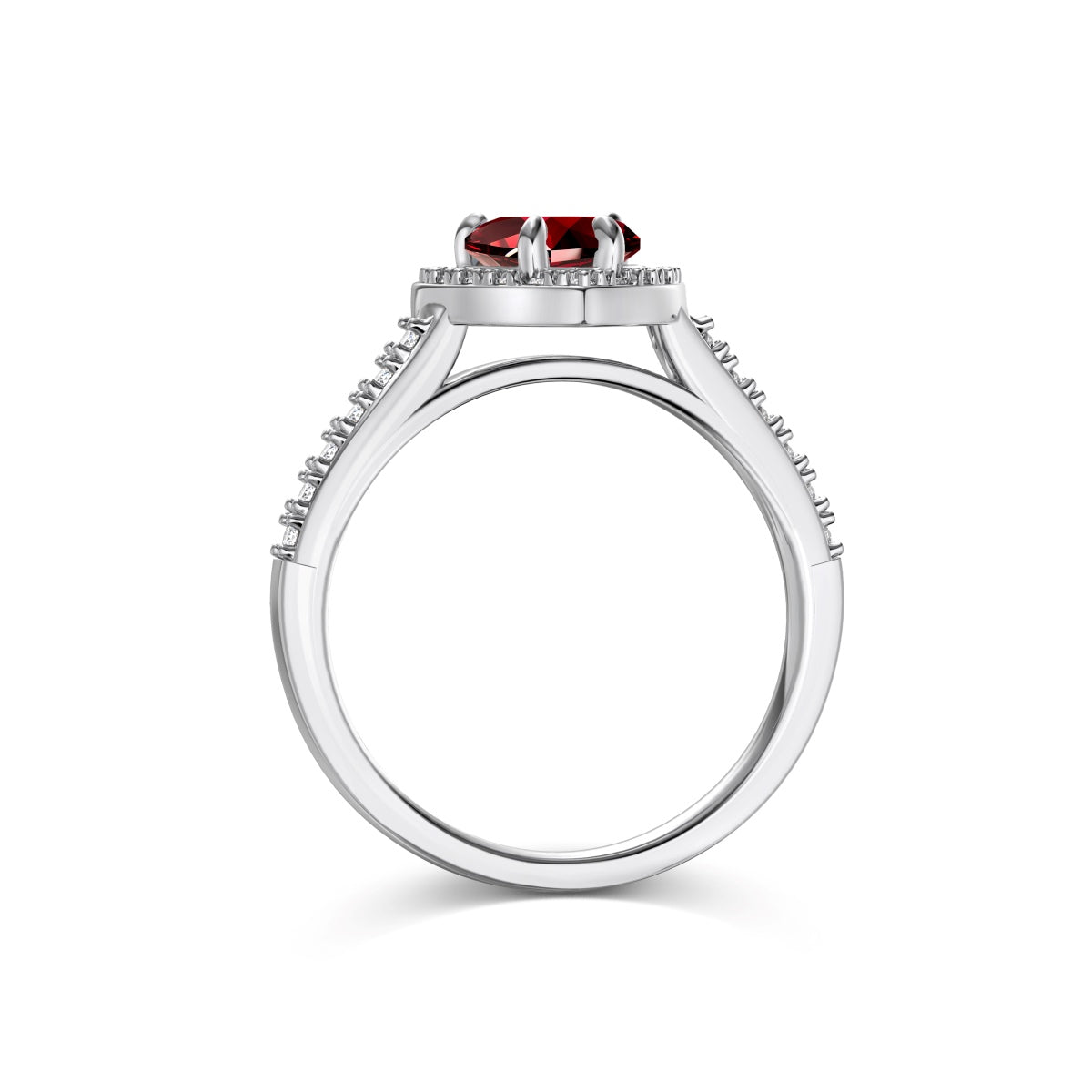 Argento 925 rodiato.Pietra centrale cubic zirconia taglio cuore di qualità 5A;Pietre laterali e sulla fascia: cubic zirconia taglio tondo di qualità 5A.