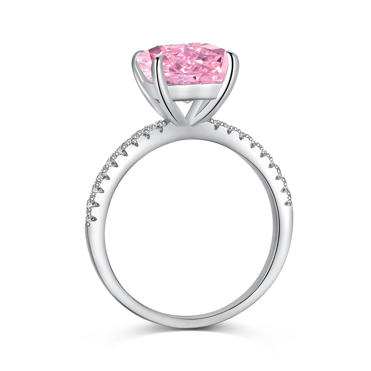 Argento 925 rodiato.Pietra centrale: cubic zirconia taglio radiant (forma square) 8x8mm di qualità 8A.Pietre laterali: cubic zirconia taglio tondo di qualità 5A.