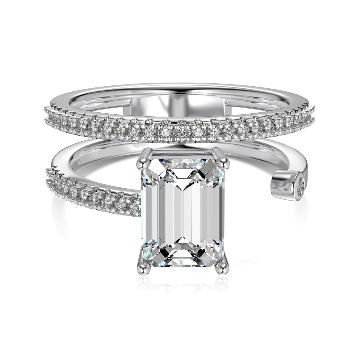 Argento 925 rodiato.Pietra all'estremità: cubic zirconia taglio smeraldo di qualità 5A;Pietre sulla fascia: cubic zirconia taglio tondo di qualità 5A.