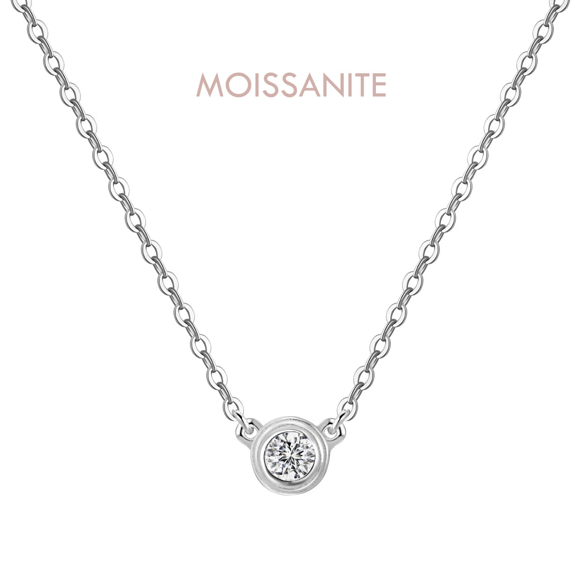 Argento 925 rodiato.Moissanite certificata GRA taglio brillante. Clarity: VVS1; Color: D; Cut Grade: Excellent.Lunghezza 40+5cm di allungo.