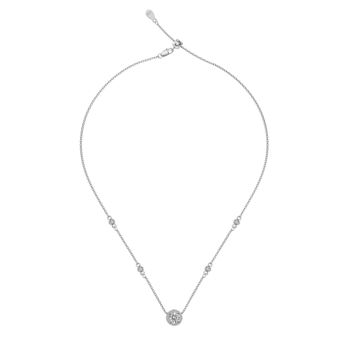 Argento 925 rodiato.Pietre cubic zirconia taglio tondo di qualità 5A.Lunghezza 40+5cm di allungo.