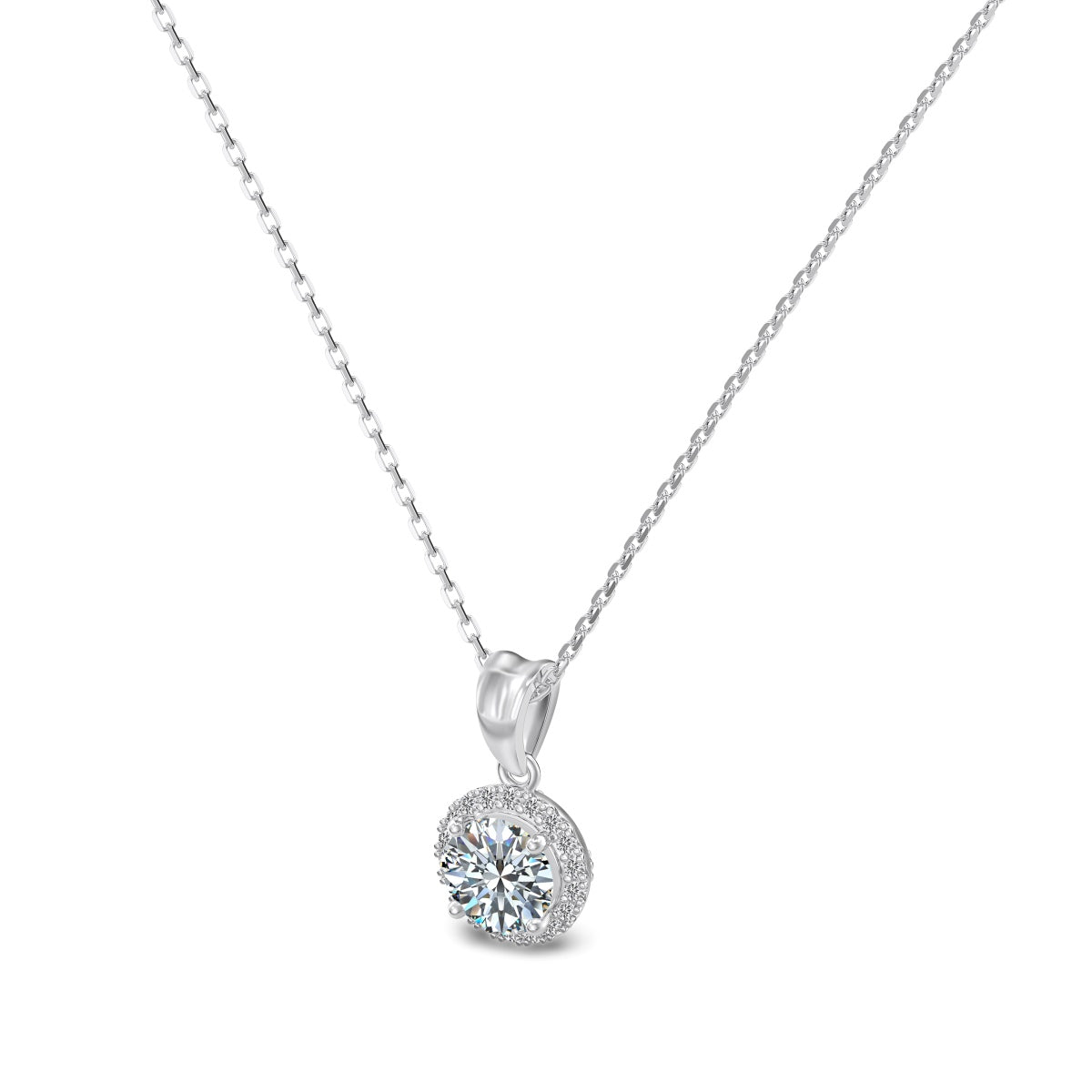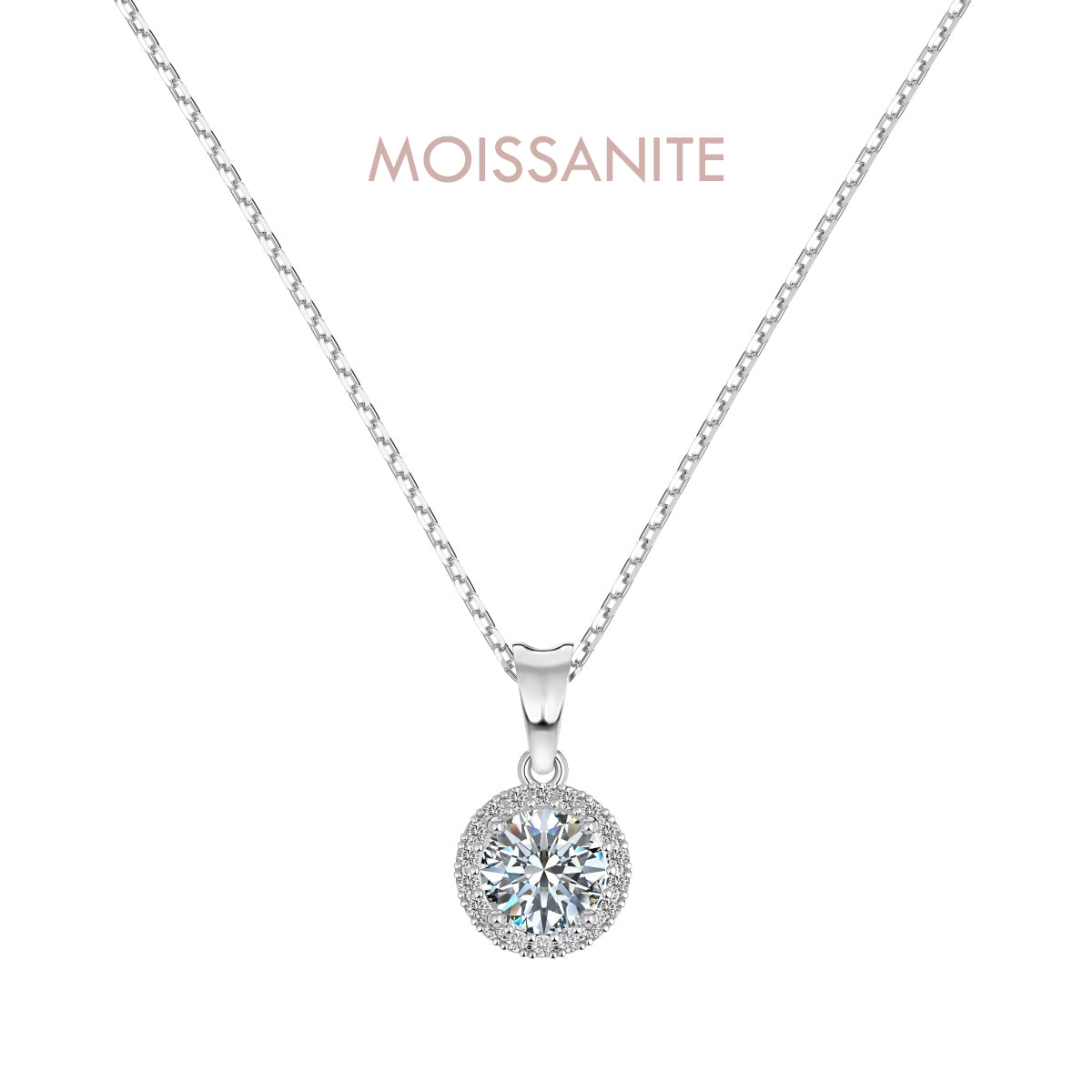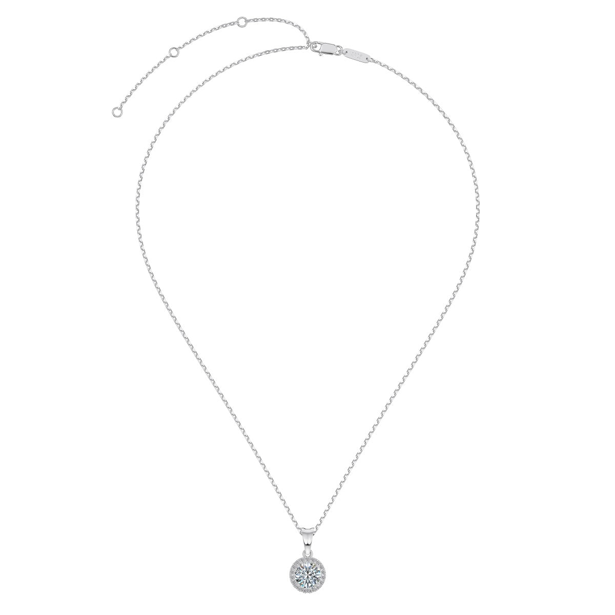 Argento 925 rodiato.Pietra centrale: moissanite certificata GRA taglio brillante 6.5mm. Clarity: VVS1; Color: D; Cut Grade: Excellent.Lunghezza 40+5cm di allungo.